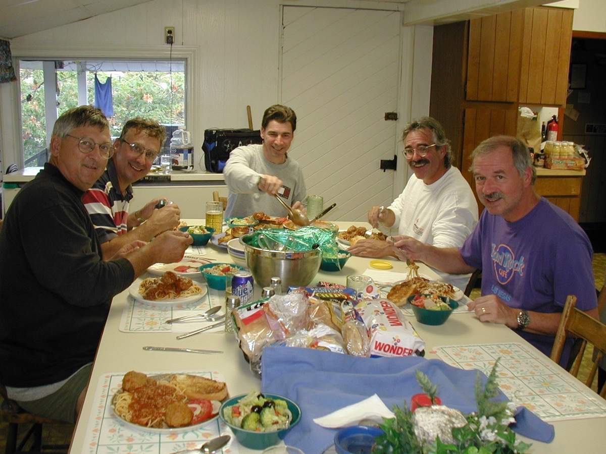 The boys lounging around the card table.