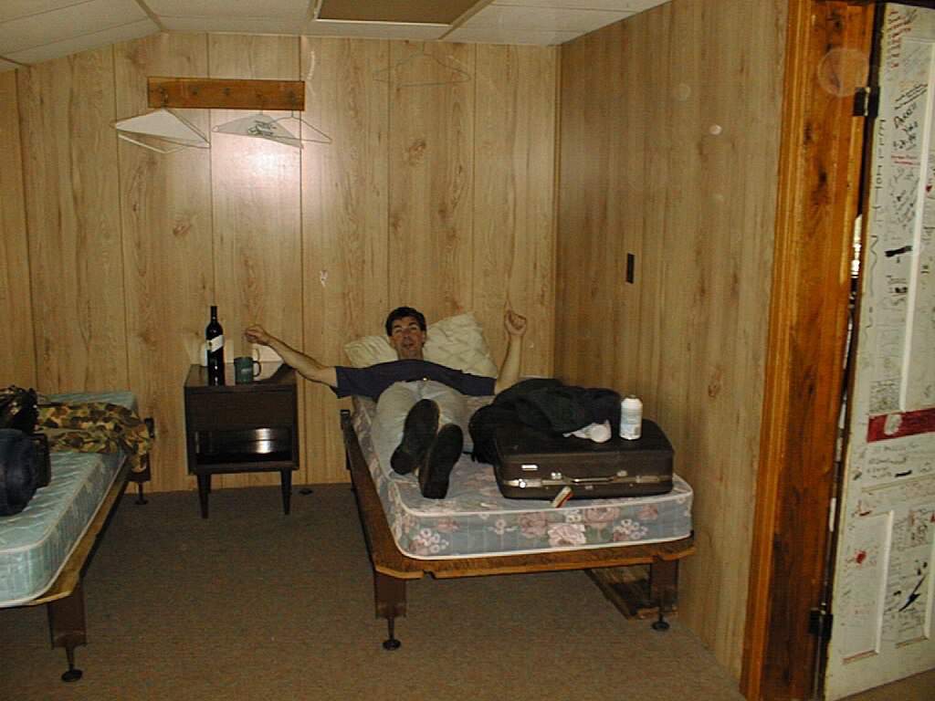Marty O'Toole relaxing within 5 minutes of reaching camp.