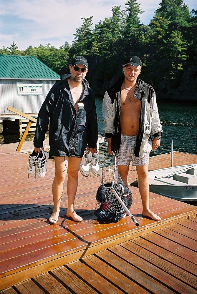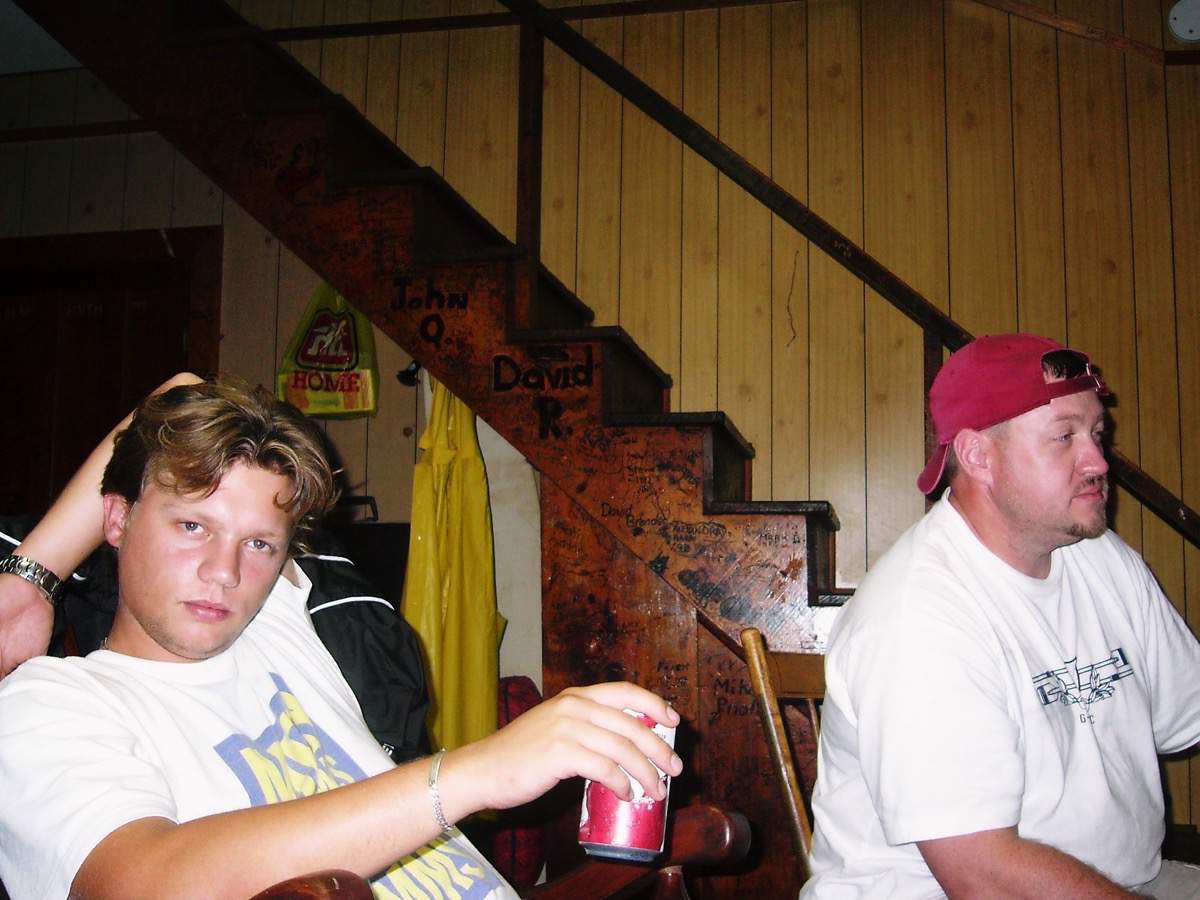 Father & son drying out after an unintentional swim in Clear Lake.