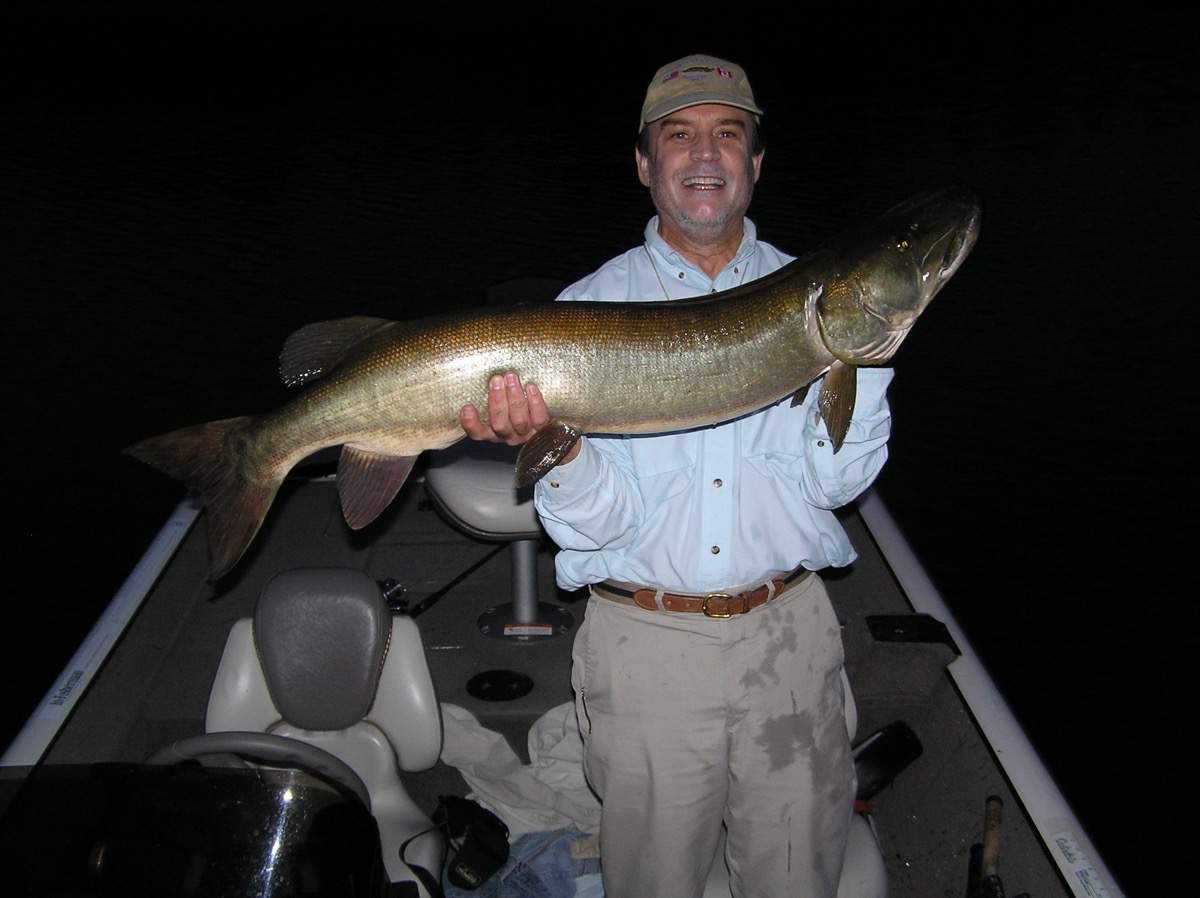 45" musky caught on topwater at dusk.