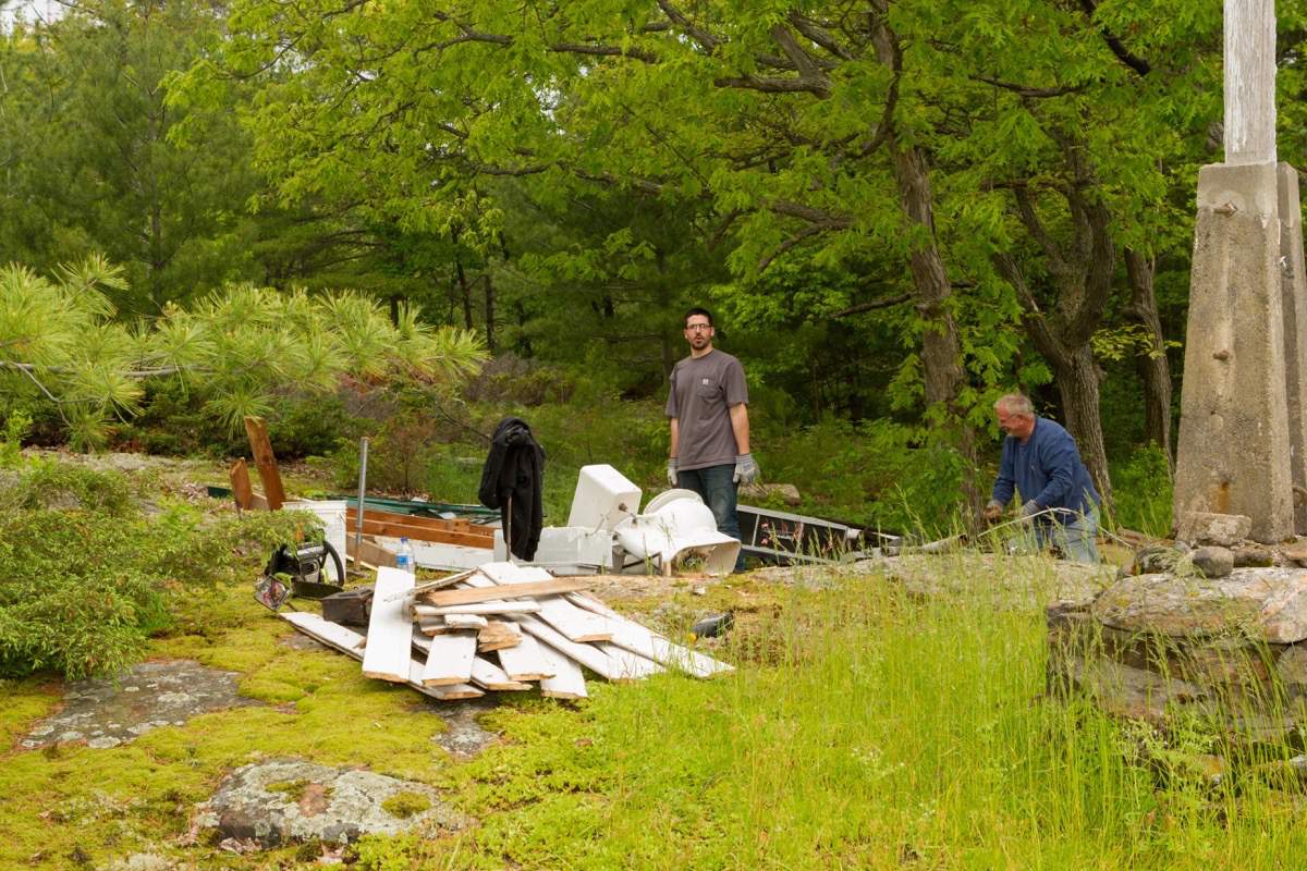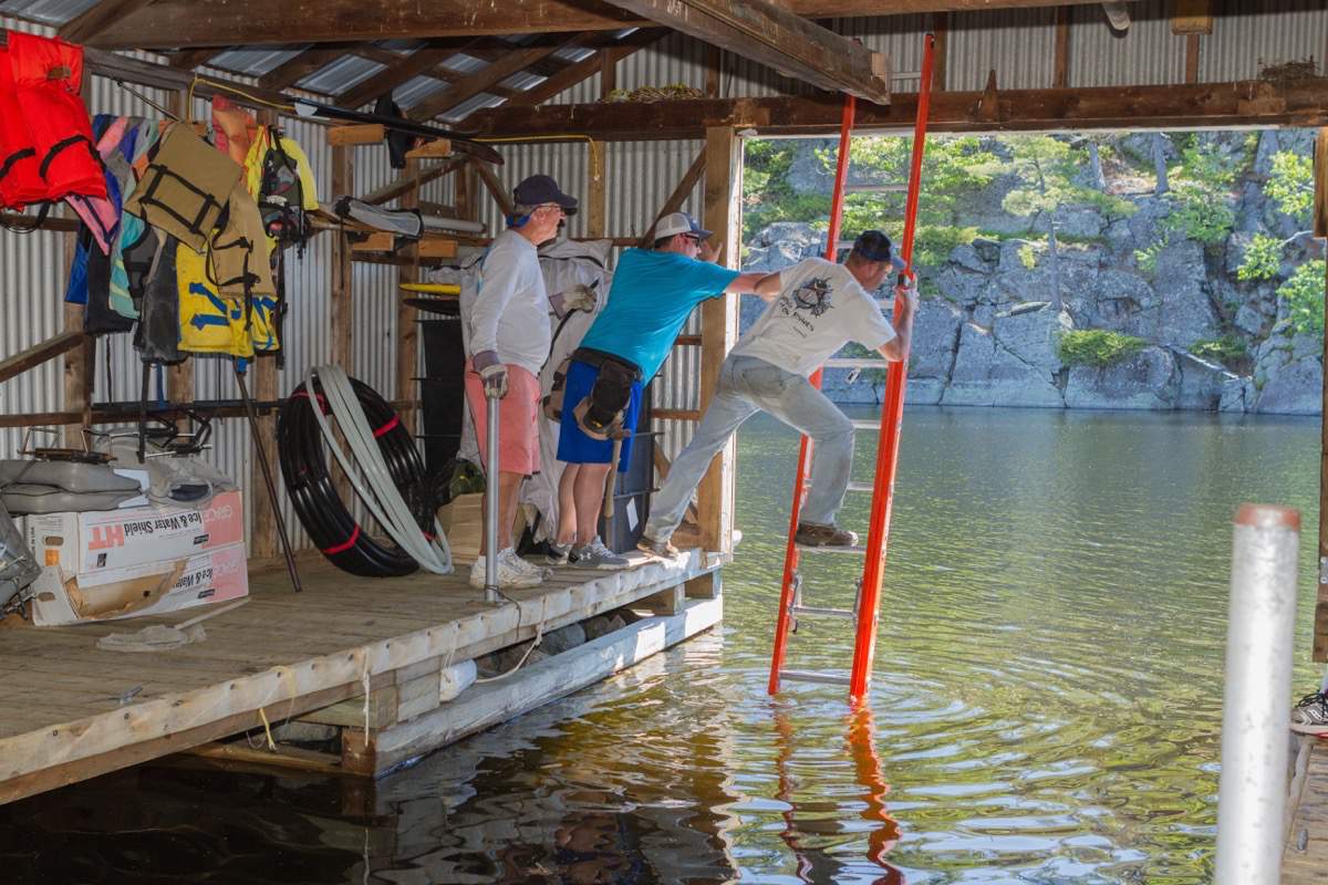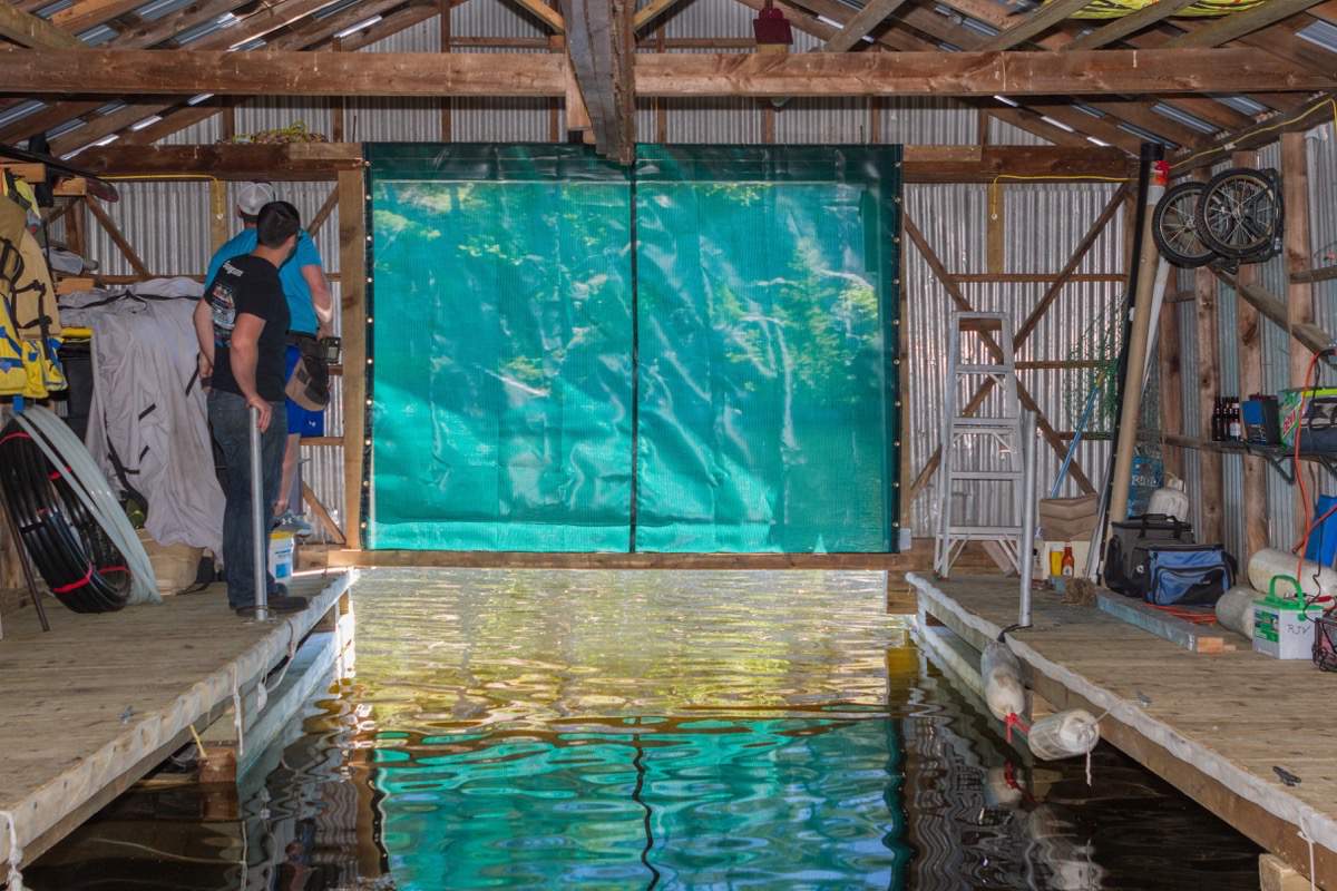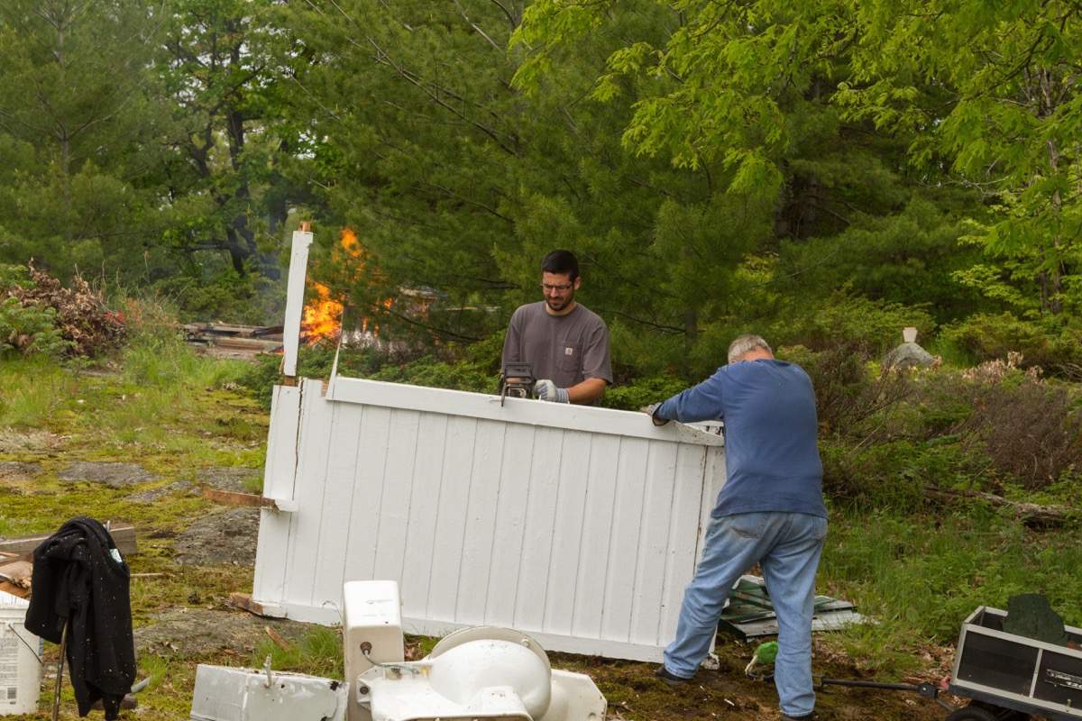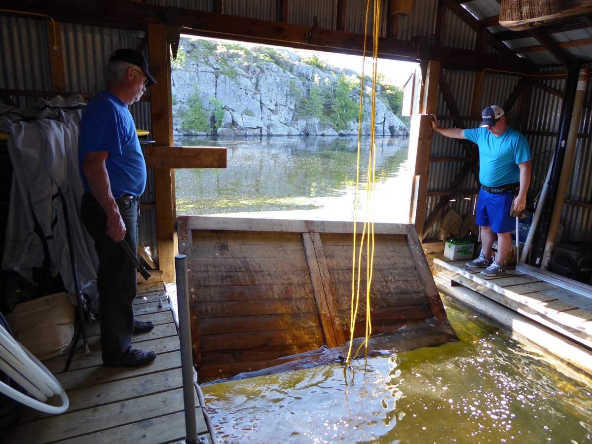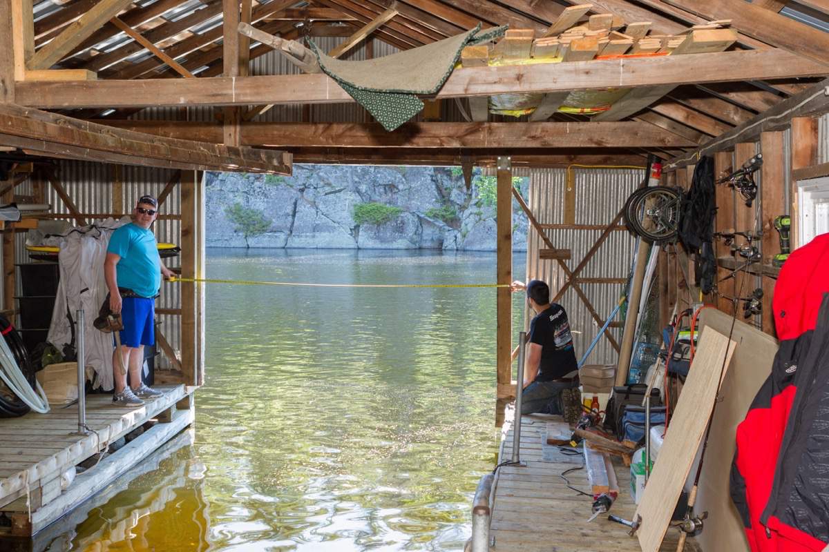 Taking down the boathouse door.