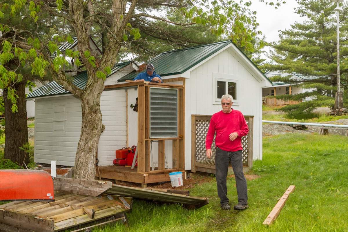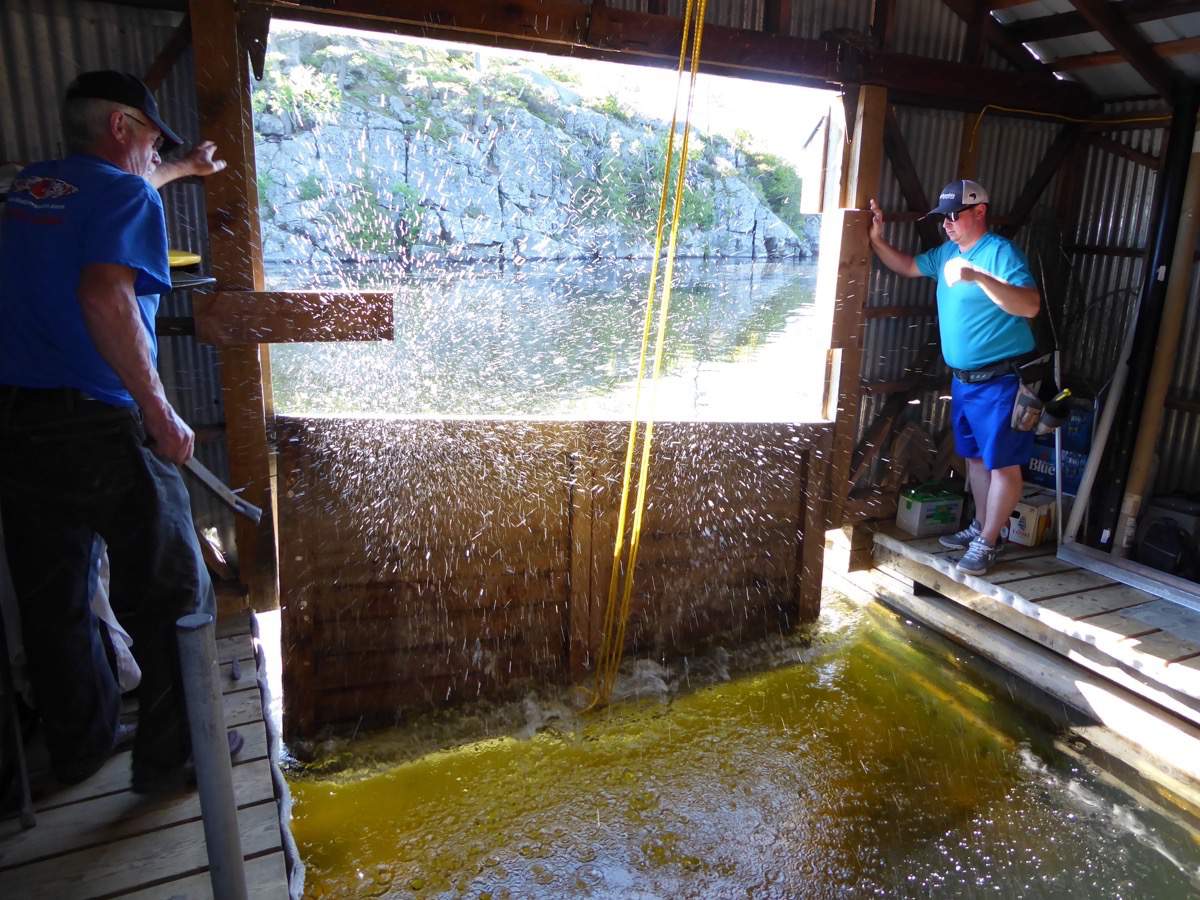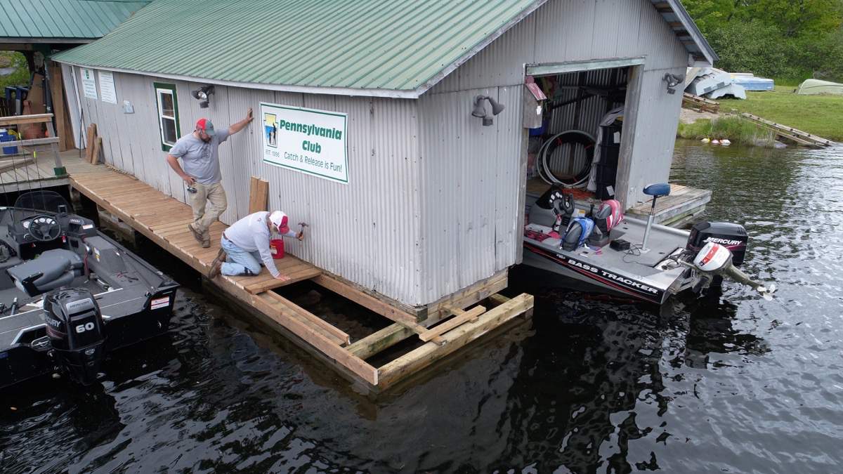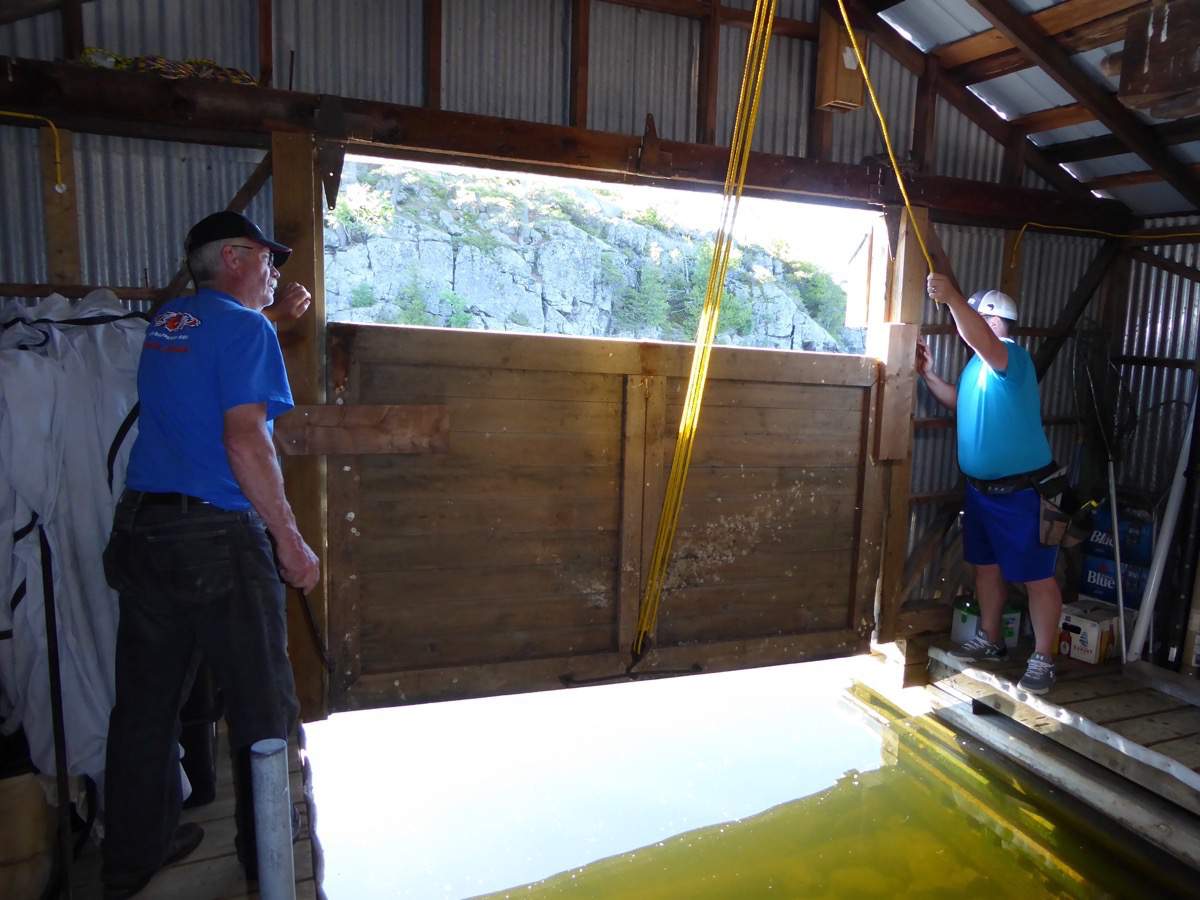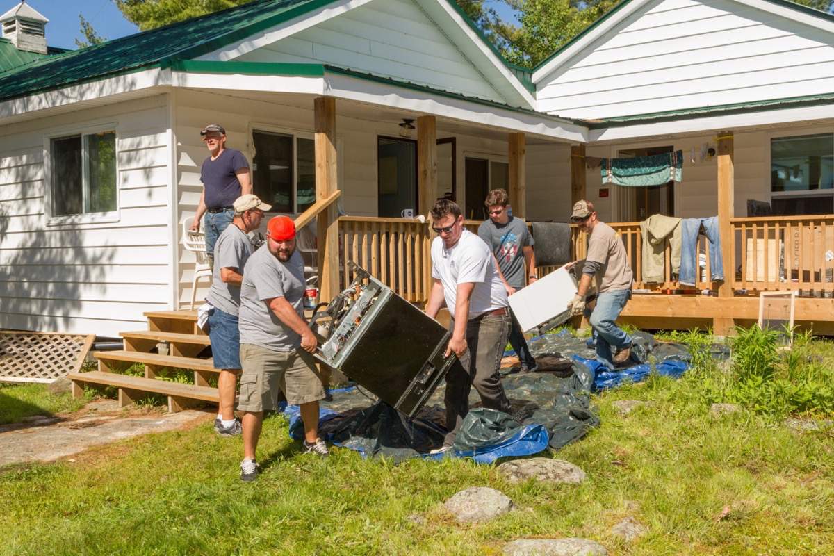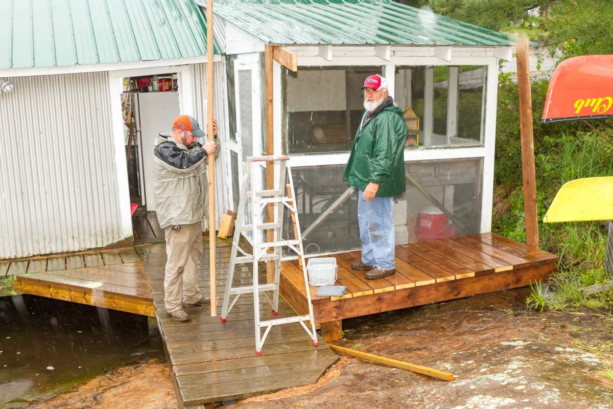 Taking down the boathouse door.