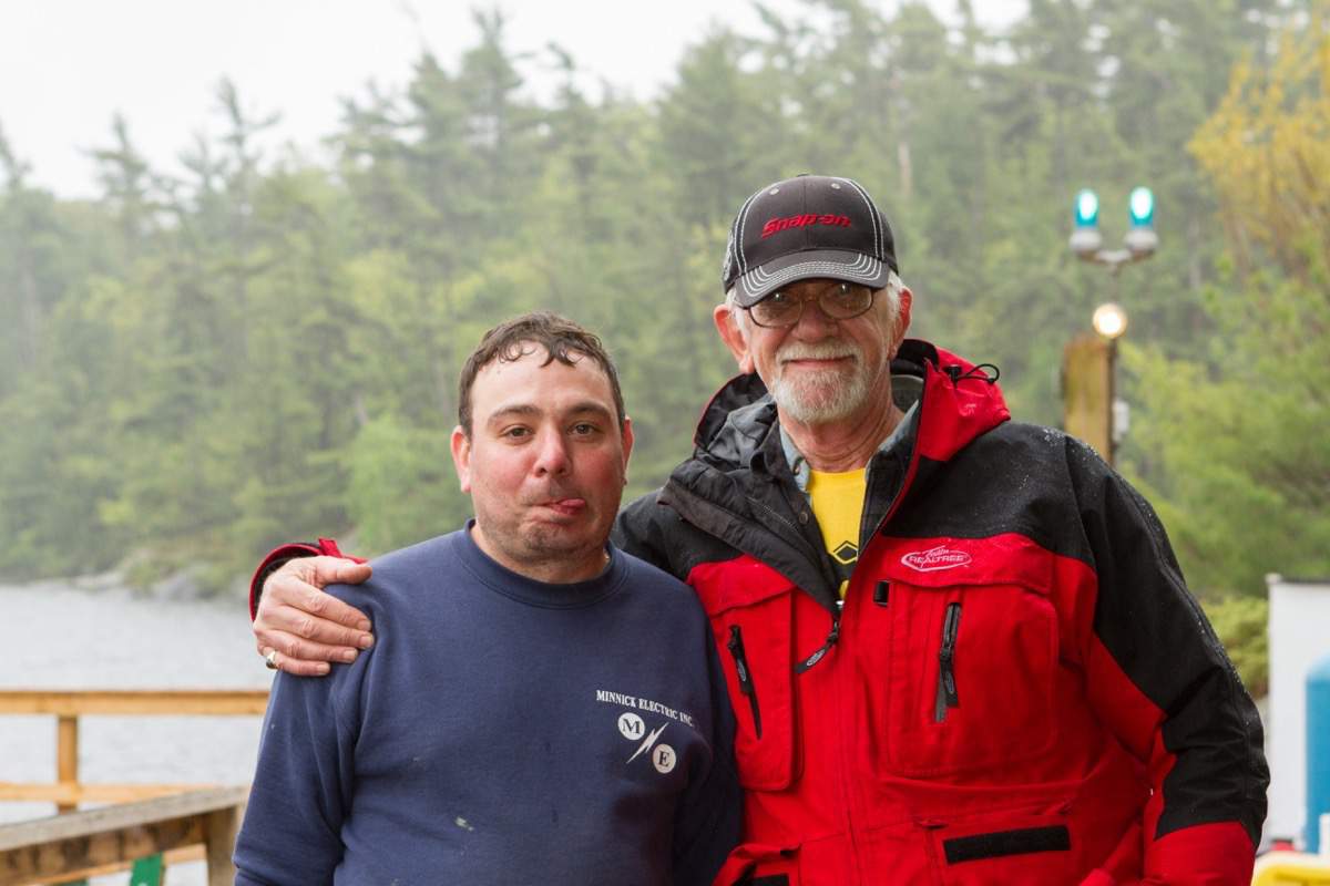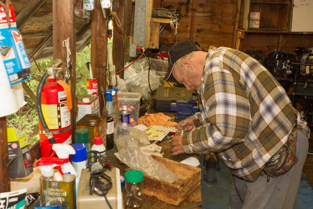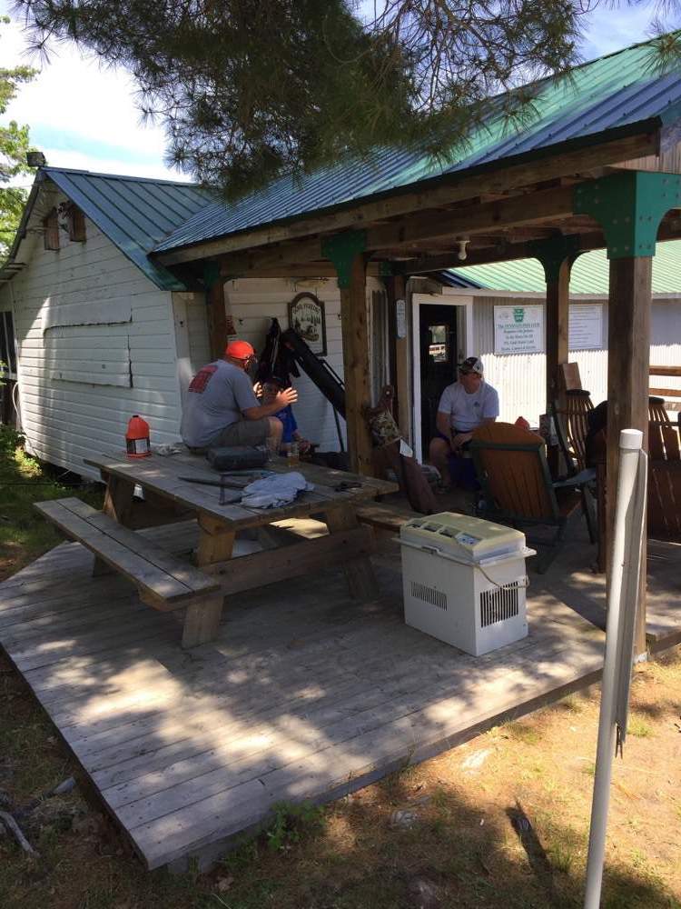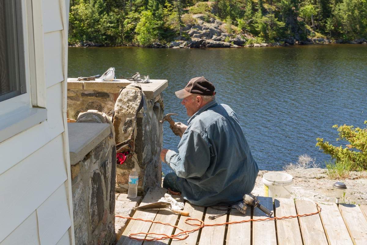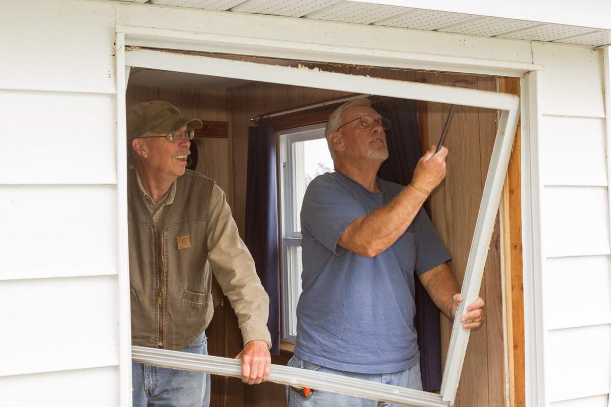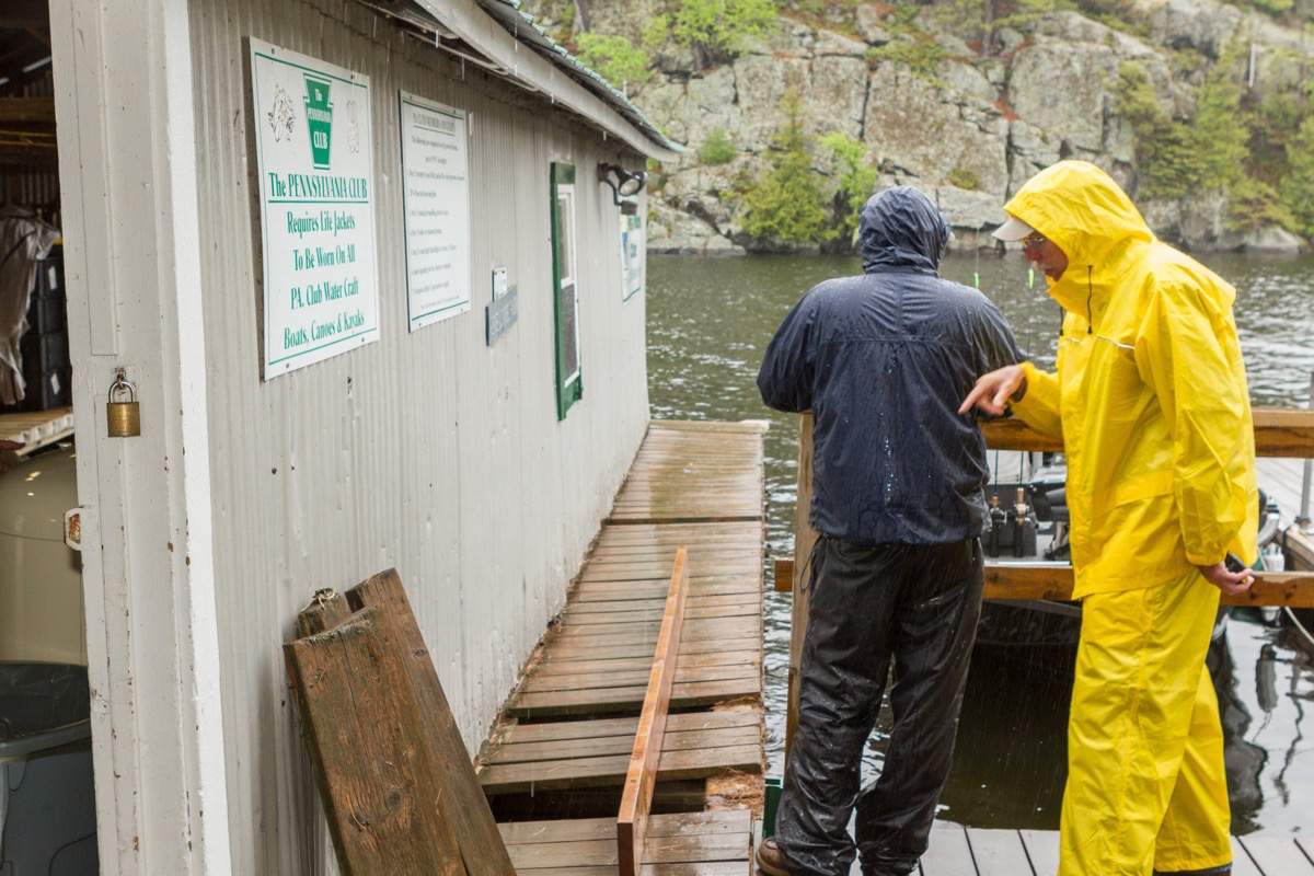 Taking down the boathouse door.
